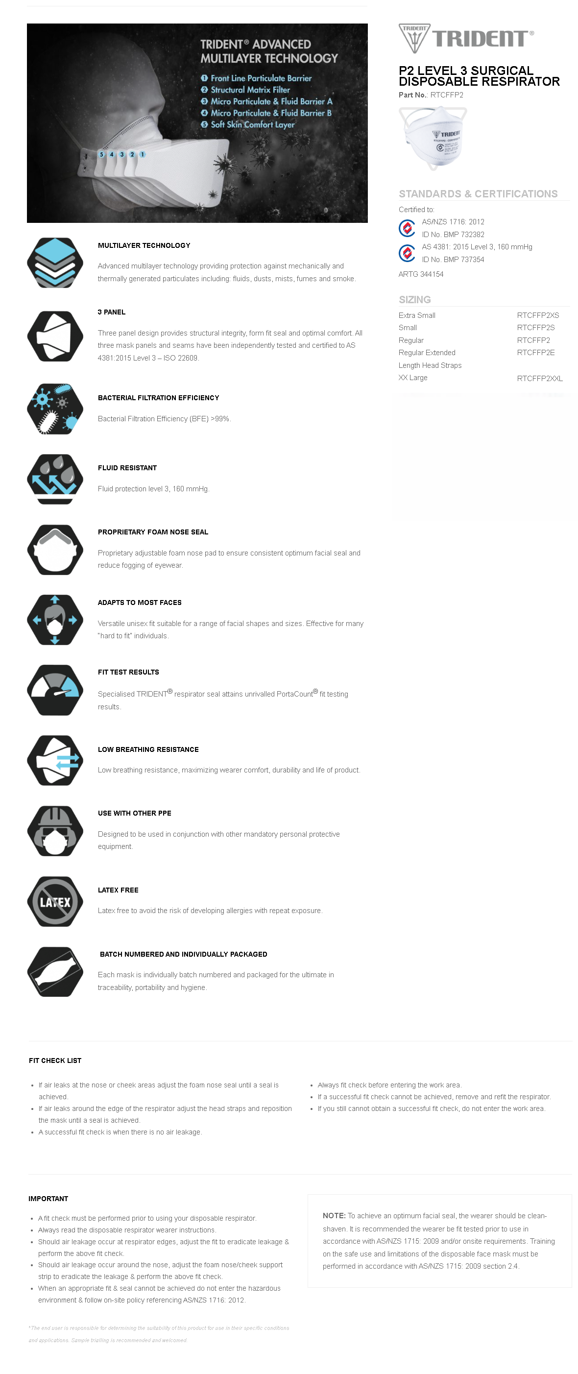 Trident P2 Level 3 Surgical Disposable Respirator